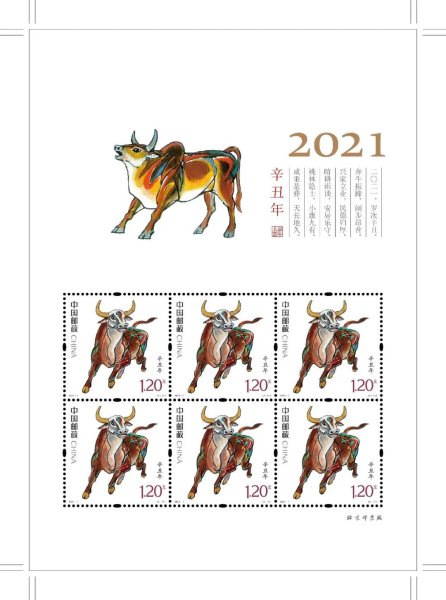 著名画家姚钟华受邀设计2021年生肖牛邮票,他也是1985年第一轮生肖牛邮票的原画作者。新一年的《辛丑年》特种邮票延续了第四轮生肖邮票中体现的“家国”理念,一套两枚,分别展示了“奋发图强,昂首向前”的国家期许与“舐犊情深,温馨和乐”的家庭企盼,共同汇聚成浓浓的新春祝福。