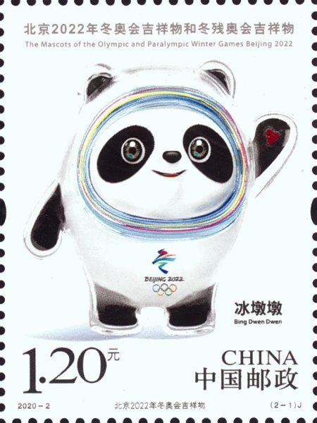 中国邮政2020年1月16日发行《北京2022年冬奥会吉祥物和冬残奥会吉祥物》纪念邮票1套2枚。