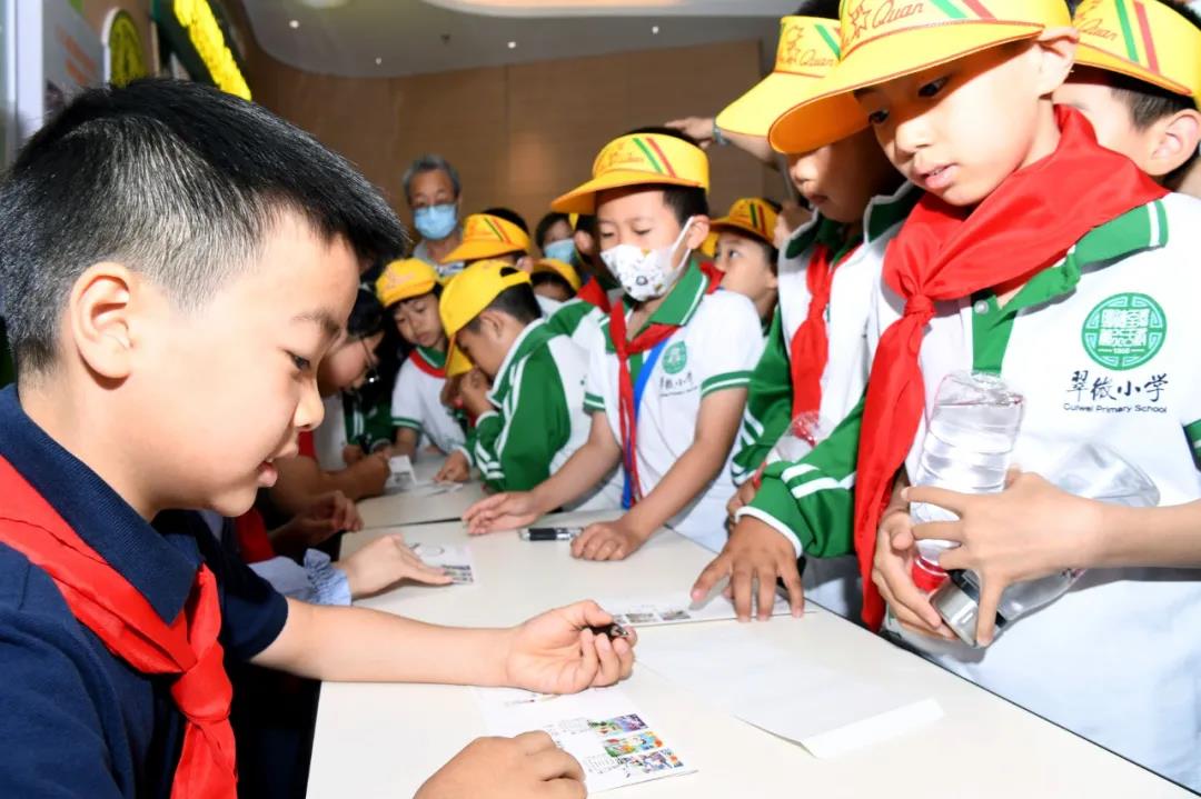 花儿向阳,童心向党,在高昂奋进的童声合唱《我和我的祖国》中,颁奖和邮票首发活动圆满落下帷幕。随后,出席活动的嘉宾现场在《儿童画作品选》特种邮票首日封上签名,并投递到主题邮局邮筒中,为部分获奖小朋友们寄出了一份饱含特殊意义的节日礼物。杨晓芒等3位小作者在主题邮局分别为小朋友们签名,鼓励他们用自己创作的邮票作品向建党百年献礼、向伟大时代致敬!