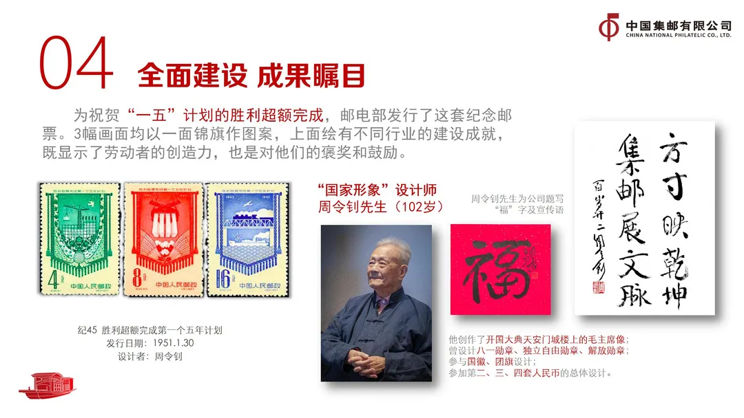二是邮票传递情感。抗美援朝战争中,每当志愿军战士们看到信封上印有五星红旗的邮票时都备感亲切、备受鼓舞。在战场上,这些信函就是他们与祖国的情感纽带。三是邮坛蓬勃发展。印制独立自主,北京邮票厂的建成投产结束了中国邮票印制技术长期受制于外国的历史;设计百花齐放,《金鱼》《菊花》《蝴蝶》《黄山风景》《牡丹》“五朵金花”铸就了邮坛经典;队伍人才辈出,社会名家积极参与邮票设计,自己的邮票设计队伍逐渐形成。张仃、孙传哲、周令钊、黄永玉、邵柏林等是其中的代表。