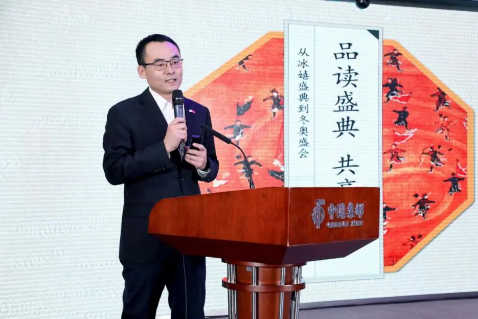 北京冬奥组委市场开发部特许经营管理处处长、冰嬉文化研究专家郭磊先生为大家介绍清代《冰嬉图》长卷,为现场及直播间的观众讲解了冰嬉文化,以及这款冬奥会特许产品的特色亮点。