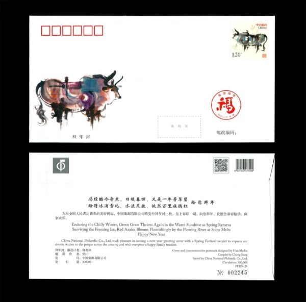 为纪念拜年封发行30年,刘敦老师特别亲手绘制特别纪念版拜年封,融合冬奥、生肖、辞旧迎新等元素,限量发行、匠心独运。