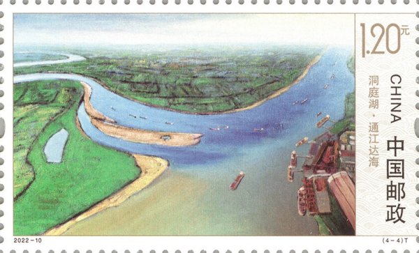 中国邮政定于2022年5月28日发行《洞庭湖》特种邮票一套4枚,小型张1枚。邮票图案名称分别为:君山叠翠、凌云鹤影、城头稻源、通江达海,小型张图案名称为:洞庭天下水。全套邮票面值为10元。邮票计划发行数量为660万套,小型张计划发行数量为590万枚。