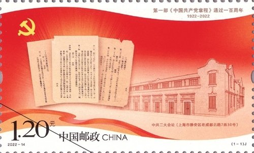 本报讯(记者 潘琛)7月23日,《第一部<中国共产党章程>通过一百周年》纪念邮票将发行。该套邮票一套1枚,全套面值为1.20元,计划发行680万套。