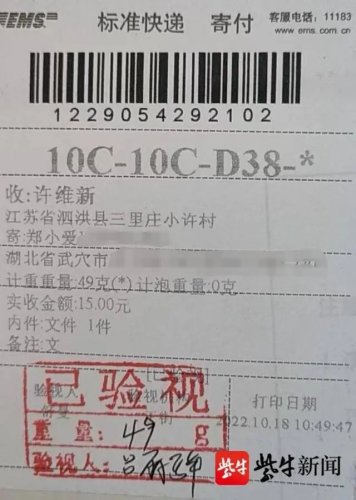 10月19日下午,邮递员曹子祥像往常一样,按照地址把一封封信件送到收信人手中。然而,一封信息不完整的信件让他犯了难。收件人叫许维新,没有电话号码,地址为泗洪县三里庄小许村。这里的村民早就已经搬迁,以现有的信息,无法找到收件人。