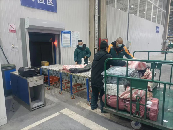 凌晨1点,乌鲁木齐邮区中心与机场集团各部门协作配合,提前在规定点位配置设备、安排人员待命。凌晨2点,经过安检、交运、收运、称重、复重、牵引等一系列标准操作流程,耗时25分钟,3个路向108袋426公斤上航邮件全部完成交运。