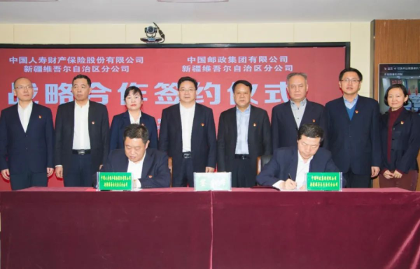 2月28日,中国邮政集团有限公司新疆区分公司与中国人寿财产保险股份有限公司新疆分公司举办战略合作协议签约仪式,双方将进一步深化金融、寄递、渠道等多方面合作,实现资源共享、优势互补、合作共赢。