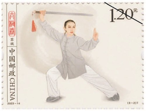 该套邮票一套3枚,图案内容分别为拳术、器械、推手。邮票采用工笔人物形式表现,整体色调以黑白灰为主,背景采用水墨飞白映衬太极拳平和、包容、大道至简的意境。第一枚邮票表现了一位白发长须老者,正气定神闲地做着太极拳单鞭动作,体现出太极拳的传统风范和延年益寿的作用。背景用挥洒自如的水墨笔触和肌理来表现,伴随老者动作产生无形气韵。第二枚邮票中是一位英姿飒爽的舞剑女子,背景中如影随形的气流若隐若现,体现出太极剑行云流水的特点。第三枚邮票中是一对进行太极拳推手的男女青年,一男一女、一黑一白象征太极的阴阳相济,背后的水墨肌理隐约形成阴阳的概念,刻画出“阴阳太极本相随、动静虚实把手推”的场景。
