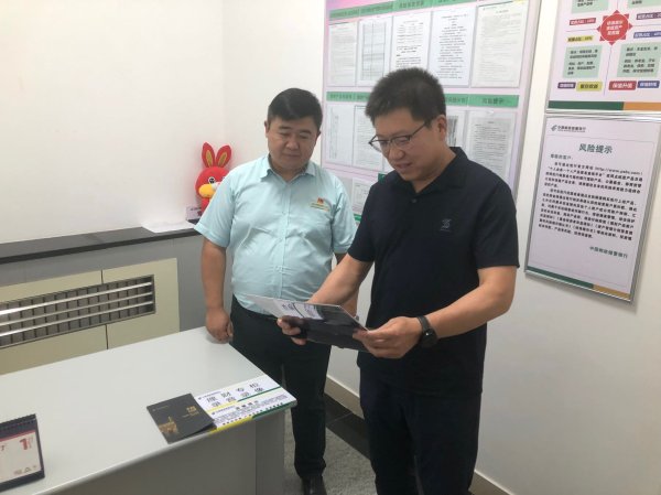 张育琪(右)在调研督导金融业务