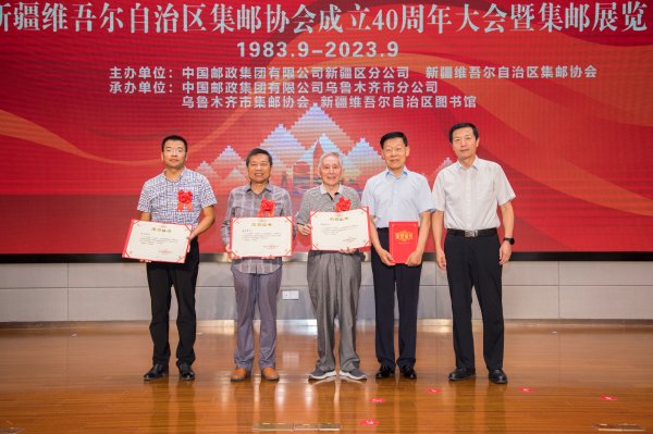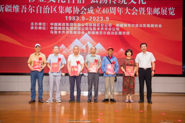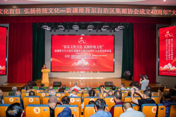 8月23日,中国邮政集团有限公司新疆维吾尔自治区分公司在新疆图书馆举办“彰显文化自信 弘扬传统文化”——新疆维吾尔自治区集邮协会成立40周年大会暨全区集邮巡回展览乌鲁木齐站启动仪式,隆重庆祝自治区集邮协会成立 40周年,正式启动“彰显文化自信 弘扬传统文化——新疆维吾尔自治区集邮协会成立40周年”全区集邮巡展系列活动,展出部分获奖邮集和特邀类邮集。