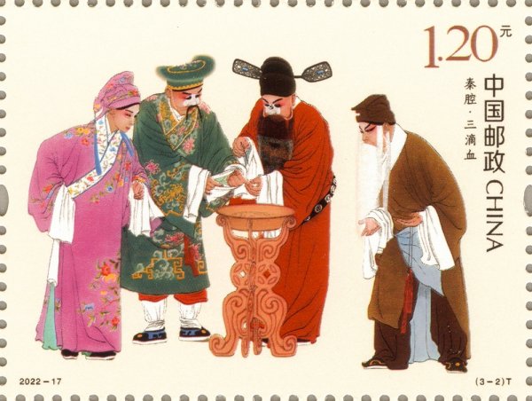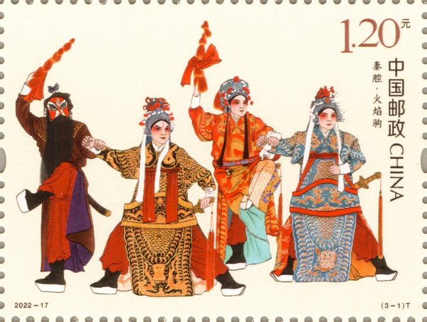 中国邮政定于2022年8月13日发行《秦腔》特种邮票一套3枚。邮票图案名称分别为:火焰驹、三滴血、游西湖。全套邮票面值为3.60元。邮票计划发行数量为698万套。