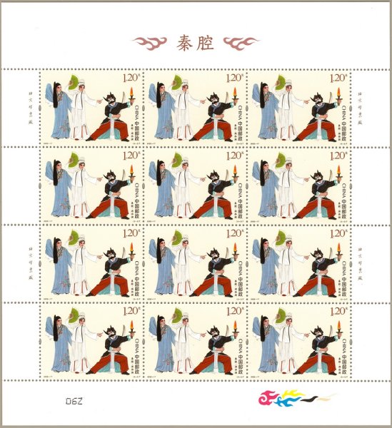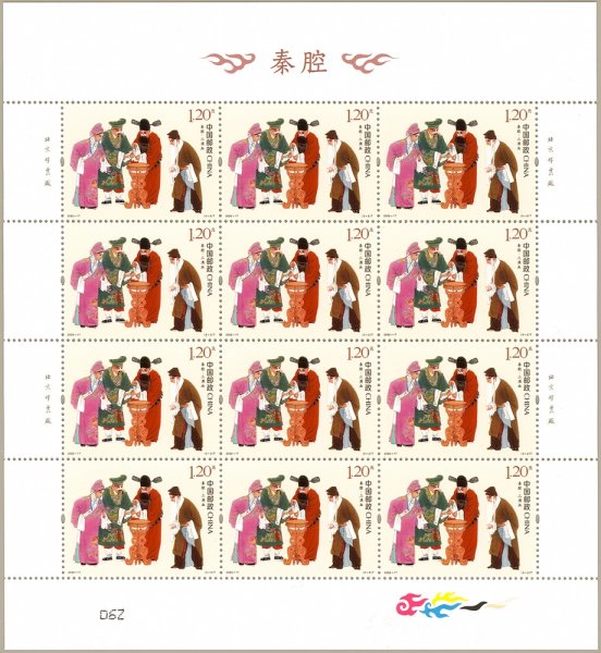 该套邮票选取了《火焰驹》《三滴血》《游西湖》3部秦腔经典传统剧目的精彩片段,分别表现了铜锤花脸、文武小生、丑角、老生、小生、小旦等典型戏曲人物形象,原画为绢本设色,采用中国传统工笔画法,运用粗犷的线条、浓烈的色彩,以呼应秦腔独特的艺术风格,同时结合淡雅的背景,烘托前景重彩戏曲人物,增添了画面的古风雅韵。