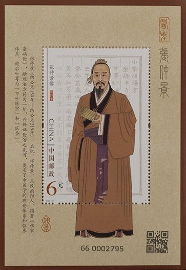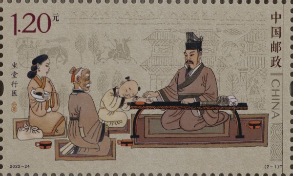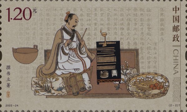 中国邮政定于2022年10月22日发行《张仲景》特种邮票1套2枚,小型张1枚。邮票图案名称为坐堂行医、撰书立著,小型张图案名称为张仲景像。全套邮票面值8.40元。邮票计划发行数量为750万套,小型张598万枚。