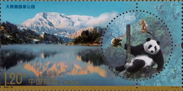 大熊猫国家公园总面积2.20万平方公里,横跨四川、陕西、甘肃三省,栖息着全国总量70%以上的野生大熊猫。这是一个被“伞护”的生态家园,是世界生物多样性热点区,除了大熊猫,还生活着雪豹、川金丝猴、羚牛、珙桐、红豆杉等珍稀野生动植物。如今的大熊猫国家公园里,一幅人与自然和谐共生的美好画卷正徐徐展开。邮票表现了大熊猫、小熊猫、川金丝猴、珙桐、红豆杉等元素。