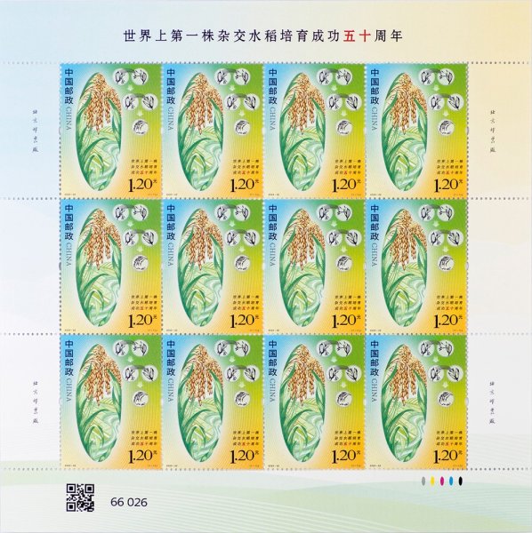 中国邮政定于2023年10月25日发行《世界上第一株杂交水稻培育成功五十周年》纪念邮票一套1枚,邮票图案名称为世界上第一株杂交水稻培育成功五十周年,全套邮票面值1.20元。邮票计划发行数量为671.1万套。
