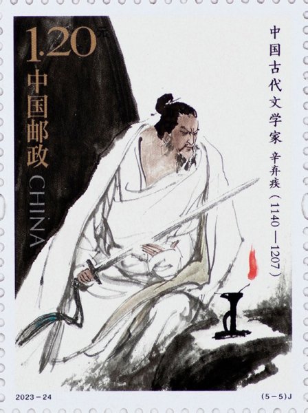 中国邮政定于2023年11月8日发行《中国古代文学家(五)》纪念邮票一套5枚,邮票图案名称为欧阳修、苏轼、李清照、陆游、辛弃疾。全套邮票面值6.00元。邮票计划发行数量为740.35万套。