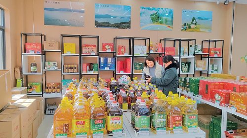 市民在安徽省安庆市乡村振兴馆选购年货。 □孙超 摄