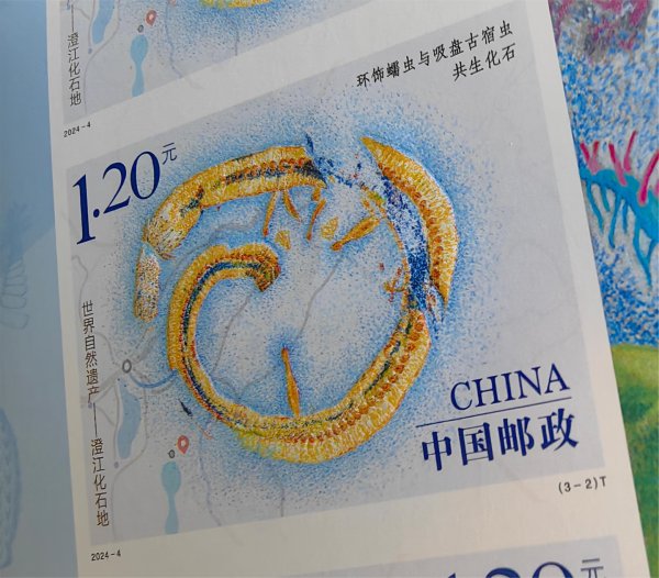 4月18日发行的《世界自然遗产——澄江化石地》特种邮票一套3枚,是一套独特而精美的高精度胶版印刷邮票,不仅在设计上突破了传统,印刷工艺上的精彩之处更加突出了邮票的美感。