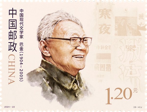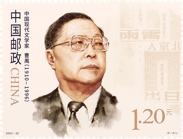 邮票第一枚主题为:鲁迅。鲁迅(1881—1936),原名周树人,字豫才,浙江绍兴人。中国现代文学家、思想家和革命家。1902年赴日本留学,后弃医从文。鲁迅是中国现代文学的奠基人,其作品忧愤深广,有着强烈的批判精神与人文关怀,包括杂文、小说、论文、散文、翻译作品等约一千万字,对“五四运动”后的中国文化产生了深刻影响。邮票背景书影为《野草》《呐喊》《无题·惯于长夜过春时》《自题小像》。 邮票第二枚主题为:郭沫若。郭沫若(1892—1978),原名郭开贞,字鼎堂,笔名沫若,生于四川乐山沙湾。郭沫若是百科全书式的文化巨匠,是中国现代文学家、诗人、翻译家。1949年当选全国文联主席,后任政务院副总理兼文化教育委员会主任、中国科学院院长等。郭沫若是中国新诗奠基人,开创并引领了一代诗风,代表诗集《女神》是中国新诗史上一座不可磨灭的丰碑。郭沫若也是中国历史剧的重要开创者,代表历史剧《屈原》,是我国现代历史剧的经典之作。邮票背景书影为《女神》《屈原》《前茅》。 邮票第三枚主题为:茅盾。茅盾(1896—1981),原名沈德鸿,字雁冰,生于浙江桐乡。中国现代小说家、文学评论家与文艺理论家。茅盾是五四新文化运动的先驱者之一,是五四文坛重要的批评家,其主持的《小说月报》是新文学的重要阵地。代表作《子夜》是最负盛名的长篇小说,开创了社会剖析派小说的经典范式,是中国现实主义小说的里程碑,对后来的长篇小说创作影响深远。新中国成立后,茅盾担任文化部首任部长、中国文联副主席、中国作协主席等职。1981年,中国作家协会设立茅盾文学奖,以推动社会主义文学事业的繁荣。邮票背景书影为《子夜》《蚀》《小说月报》。 邮票第四枚主题为:巴金。巴金(1904—2005),四川成都人,原名李尧棠,字芾甘。中国现代作家、翻译家、出版家。1949年出席第一次全国文代会,当选文联常委。后担任上海市文联副主席、中国作家协会主席、全国文联副主席。2003年11月,被国务院授予“人民作家”荣誉称号。代表作有“爱情三部曲”、“激流三部曲”、《随想录》和《寒夜》等。邮票背景书影为《寒夜》《家》《第四病室》《灭亡》。 邮票第五枚主题为:老舍。老舍(1899—1966),满族,原名舒庆春,字舍予,生于北京。老舍是中国现代小说家、剧作家。新中国第一位获得“人民艺术家”称号的作家。曾任中国文联副主席、中国作家协会副主席、北京市文联主席。他是一位多产的现实主义作家,他的作品多用朴素、凝练、口语化的语言写就,鲜明生动,妙趣横生,充满着强烈的时代精神和浓郁的生活气息,被誉为语言大师。代表作有《四世同堂》《骆驼祥子》《茶馆》等。邮票背景书影为《茶馆》《四世同堂》《骆驼祥子》。 邮票第六枚主题为:曹禺。曹禺(1910—1996),原名万家宝,祖籍湖北潜江。曹禺是中国现代话剧的泰斗与奠基人,也是现代话剧艺术的一座高峰。代表作有《雷雨》《日出》《原野》《北京人》《家》等。新中国成立后,曾任中央戏剧学院副院长、北京人民艺术剧院院长、中国文联主席、中国剧协主席等职,作为卓越的戏剧教育家,曹禺为新中国培养了一批批戏剧人才,为我国艺术教育事业作出重要贡献。邮票背景书影为《雷雨》《日出》《北京人》《胆剑篇》。 本套邮票的印制,公司通过高精度胶版工艺和独特色彩设计的巧妙运用,展现了文学家们的风采与魅力,在无形中传播了中华文化的精髓与力量。