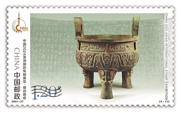 中国邮政定于2024年11月29日发行2024-27J《中国2024亚洲国际集邮展览》纪念邮票一套4枚、小型张1枚。邮票名称分别为“鼎启新章”“沪韵流光”“邮梦未来”“邮博古今”,小型张名为“浦江朝晖”。邮票设计者分别为夏竞秋、王晨、景绍宗、潘虎,小型张设计者为王虎鸣。