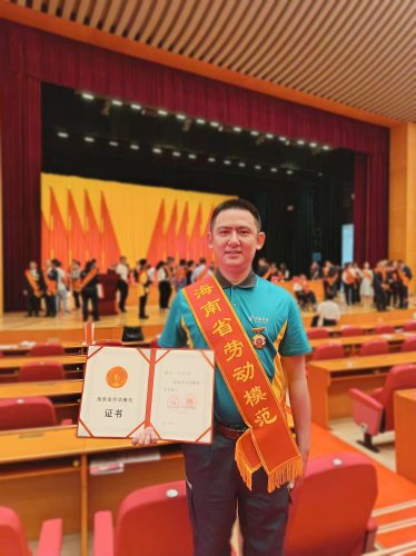 今年4月,毛自学被授予“海南省劳动模范”荣誉称号(央广网发 受访者供图)