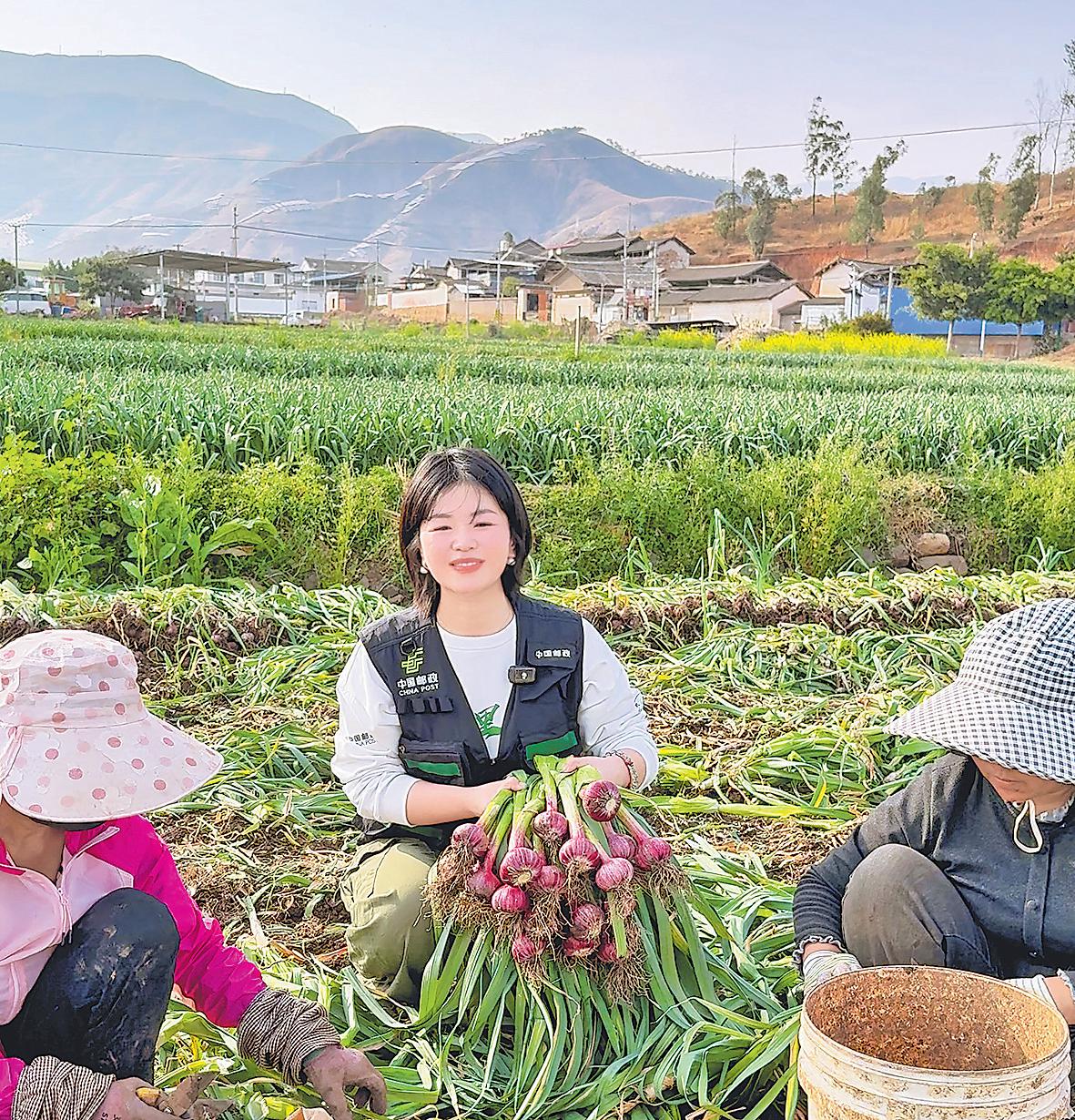 初春清晨,薄雾轻笼着山东省济宁市金乡县的广阔田野。这里出产的大蒜,是国家地理标志产品。在邮政助农直播间里,“95后”邮政主播小刘正对着镜头热情介绍,手中托起一颗饱满瓷实的紫皮蒜:“家人们看,这就是我们金乡的四六瓣紫皮蒜,从恒温保鲜库直接发货,蒜香特别浓郁!”她身后的合作社仓库内,工人们忙碌而熟练地分拣、打包、贴单,流程井然有序。不远处,几辆印有“中国邮政”字样的绿色厢式货车已准备就绪。很快,这些优质大蒜就将通过邮政四通八达的网络,送到全国各地消费者的手中。