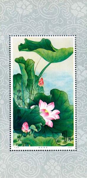 1元,新荷凌波,25万枚。 1980.8.4。影写版。P11.5。[G]。[A]俞致贞。[D]陈晓聪。北京邮票厂。 小型张规格:70mm×146mm。邮票规格:52mm×93mm。 荷花是十二花神中的六月花神。按古时候江南风俗,农历六月二十四日为荷花生日。这套邮票发行日是阳历8月4日,正是农历六月二十四日,荷花的“生日”。