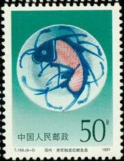 T(6-5) 现代·青花釉里红鲤鱼盘,1979.3万枚。